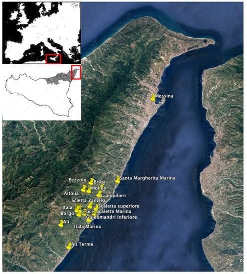 The province of Messina consists of a 3247 km2 area in North Eastern Sicily, bordering South on the province of Catania and West on the province of Palermo. Its territory extends from the Peloritani to the Nebrodi mountain chains, and is delimited North by the Tyrrhenian Sea and East by the Ionian Sea. On 1 October 2009, the Ionian coast, comprising the Municipalities of Messina, Scaletta Zanclea and Giardini Naxos, was hit by a violent flood that caused damage to the villages of Giampilieri, Giampilieri Superiore, Giampilieri Marina, Molino, Altolia, Briga, Briga Superiore, Briga Marina, Pezzolo and Santa Margherita Marina in the Municipality of Messina, the villages of Scaletta Marina, Scaletta Superiore, Guidomandri Marina, Guidomandri Superiore in the Municipality of Scaletta Zanclea, the villages of Itala Marina, Itala Centro, Borgo, Mannello and Croce in the Municipality of Itala, and the Municipalities of Alì and Alì Terme (Figure 1). The flood caused landslides, overflowing of rivers and streams, flooding of residential, commercial and industrial settlements, the interruption of the transportation infrastructures (roads, highway and railway), and resulted in 31 dead, 6 missing, 122 injured and the evacuation of 2019 people.