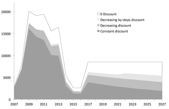 - Weitzaman, M.L. Why the far distance future should be discounted at its lowest possible rate. J. Environ. Econ. Manag. 1998, 36, 201–208. [Google Scholar] [CrossRef]