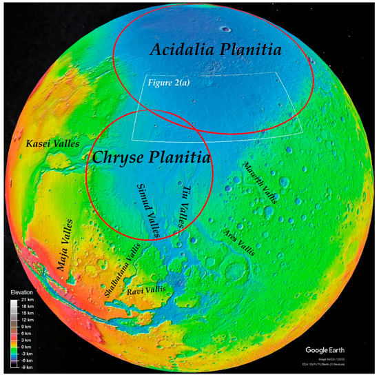 - Salvatore, M.R.; Christensen, P.R. On the origin of the vastitas borealis formation in chryse and acidalia planitiae, mars. J. Geophys. Res. Planets 2014, 119, 2437–2456. [Google Scholar] [CrossRef]