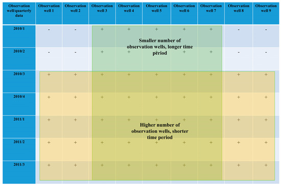 In the second step, data from each observation well was quarterly aggregated using arithmetic mean of NO3− concentrations. During data aggregation it has been observed that a lot of quarterly data is missing.