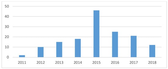 Distribution of reviewed articles by year of publication.