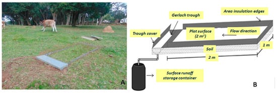 Cultivated pastures of B. decumbens were more productive (Table 1) than the native pastures. It probably produced a higher concentration of animals grazing in this part of the farm. In this case, higher water and soil loss rates can be explained as a consequence of a higher grazing pressure [] since animal trampling and defoliation causes a reduction in the number of plants, biomass availability, and litter cover that protects soils and provides organic matter for plants [].