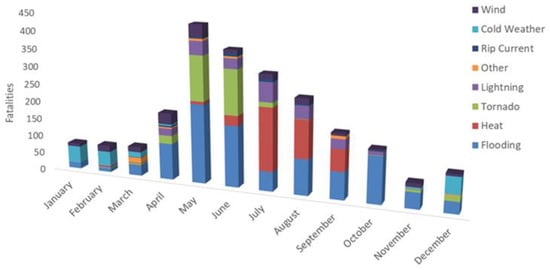 Monthly distribution of hydrometeorological disaster fatalities (all fatalities).