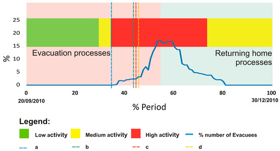 - Marrero, J.M.; García, A.; Llinares, A.; Rodríguez-Losada, J.A.; Ortiz, R. The Variable Scale Evacuation Model (VSEM): A new tool for simulating massive evacuation processes during volcanic crises. Nat. Hazards Earth Syst. Sci. 2010, 10, 747–760. [Google Scholar] [CrossRef]