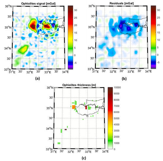 Figure 4a) well delineate the Oceanic crust of the Herodotus Basin, crossed by the Mediterranean Ridge (an accretionary wedge caused by the African Plate that subducts under the Eurasian and Anatolian plates), as well as of the Cyprus arc. Moreover, the gravitational effects of the structures lying beneath the Eratosthenes Sea-mount and the boundaries of the Levantine Basin can be identified too. The maximum value of the signal is found in correspondence of the Cyprus arc and on the boundary between the Levantine and the Herodotus basins. The former signal is due to the presence of a crustal plate subducting beneath Cyprus [