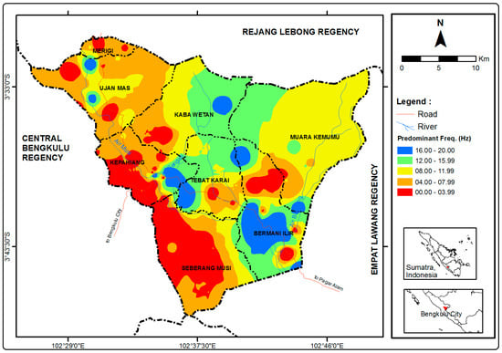 Map of the predominant frequency distribution in Kepahiang regency, Bengkulu province, Indonesia.