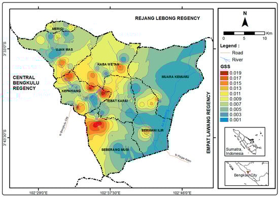 Distribution of GSS values in Kepahiang regency, Bengkulu province, Indonesia.