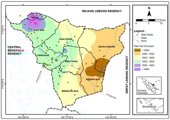 Map of the rainfall of Kepahiang regency, Bengkulu province, Indonesia (modified from BMKG []).