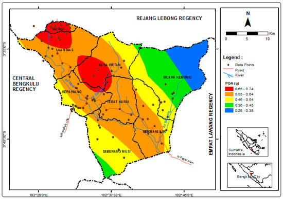 PGA bedrock map of Kepahiang regency, Bengkulu province, Indonesia (modified from Hadi and Brotopuspito []).