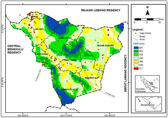 Vs30 map of Kepahiang regency, Bengkulu province, Indonesia (modified from Allen and Wald []).