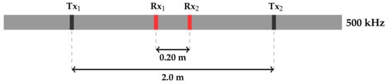 Logging instrument for model problem 2. Tx and Tx are the induction transmitters, and Rx and Rx are the receivers.
