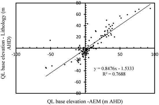 QL base elevations—Lithology vs. AEM.