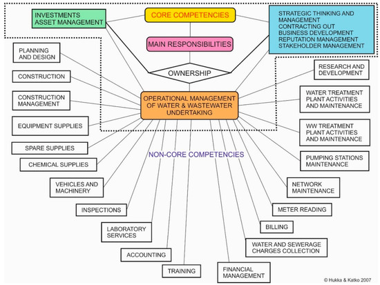 Core and non-core competencies for water and wastewater management [29] (p. 314), modified [30] (p. 9).