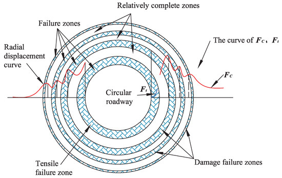 Zonal disintegration is a common deformation failure phenomenon in deep rock engineering under high geostress conditions. It is manifested by the phenomena of alternating fractured zones and non-fractured zones in the surrounding rock on both sides and face of the roadway (Figure 1) [1].