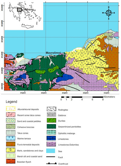 - Bornovas, J. Geological Map of Greece, Kapareli Sheet, 1:50.000; IGME: Athens, Greece, 1981. [Google Scholar]