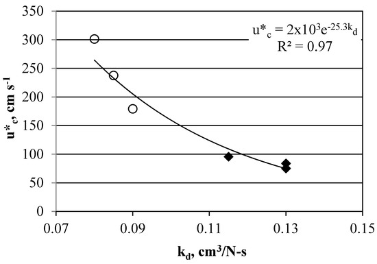 Soil erodibility coefficient, kd and critical shear velocity, , based on ψ, the grain-size proxy, hold physical significance for fine-grained materials and are both anchored by engineering properties of the materials. Open symbols have lower S:M ratios.