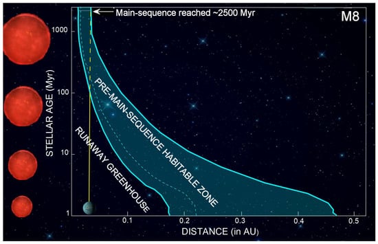 - Bin, J.; Tian, F.; Liu, L. New inner boundaries of the habitable zones around M dwarfs. Earth Planet. Sci. Lett. 2018, 492, 121–129. [Google Scholar] [CrossRef]