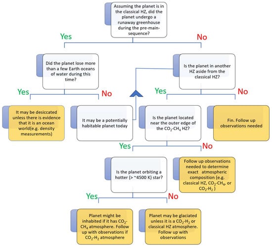 Given the various uncertainties in our current understanding (as explained above), recent work has instead adopted a more liberal view of the HZ (e.g., [2,51,129,130,131,132]), expanding it to include the detection of life beyond that suggested by the classical definition. As explained in the next section, that would also include atmospheres consisting of reduced gases like CH4 or H2, ocean worlds, desert worlds, and even planets orbiting stars that are still in the pre-main-sequence (or post-main-sequence) phase of stellar evolution, among many more possibilities that will be discussed later.
