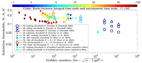 - Dey, S.; Ali, S.Z. Review Article: Advances in modeling of bed particle entrainment sheared by turbulent flow. Phys. Fluids 2018, 30, 061301. [Google Scholar] [CrossRef]