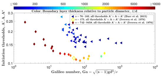 - Pähtz, T.; Durán, O. The Cessation Threshold of Nonsuspended Sediment Transport Across Aeolian and Fluvial Environments. J. Geophys. Res. Earth Surf. 2018, 123. [Google Scholar] [CrossRef]