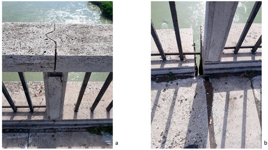 As for the private house in Amelia, the damage to the masonry can be easily related to the earthquake of 2016, because the crack was not present before the earthquake. In the case of the Marconi Bridge, the request for monitoring the internal structure came following the detachments (see Figure 5) that were discovered after the 2016 earthquake. The main findings of the two investigated areas have been reported below.