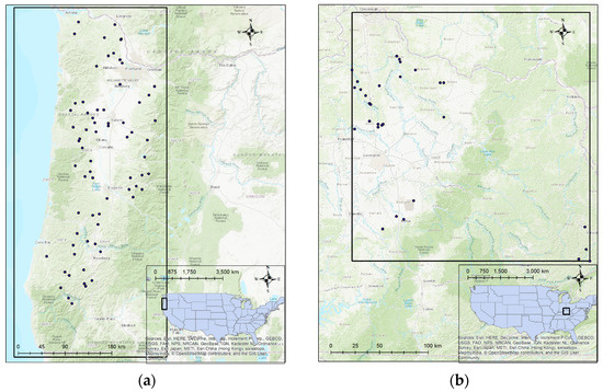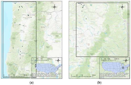 Selected soil slide sites from (a) Oregon, United States (USA) and (b) Kentucky, USA.