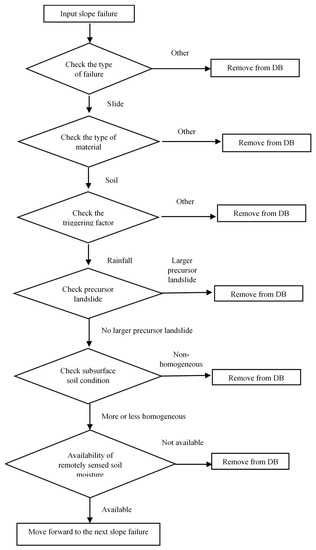 At these sites, several different slope failure types, namely soil slides, rockslides, rock falls, debris slides, mudslides, earth flows, debris flows, topples, and complex slope failures have been observed. Since different landslide types occur because of different combinations of geotechnical, topographical, geological, and hydrological conditions, it is important to group them into different landslide types to perform a meaningful analysis. However, Budimir et al. [15] observed that most of the existing landslide studies do not differentiate between landslide types, especially at the large scale. To address this shortcoming, in this study, a rigorous vetting procedure (Section 2.1) was employed to select only the soil slides. Furthermore, all of the soil slope failures considered in this study were rainfall-triggered soil slides. Hence, the vetting procedure (Section 2.1) was specifically aimed at selecting only the rainfall-triggered soil slides.