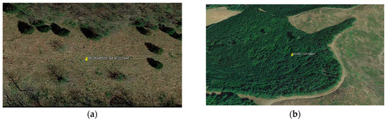 (a,b) Two randomly selected non-soil slide locations used in the study (Google Earth, 2018).