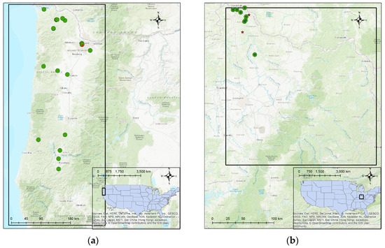 - Stuart, A.; Buckley, A.; Meacham, W. Atlas of Oregon; University of Oregon Press: Eugene, OR, USA, 2001. [Google Scholar]