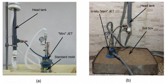 Jet Erosion Test (JET) device setup for (a) small-scale and (b) large-scale.