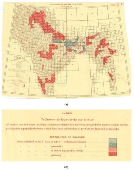 (a) Map showing structure of 1” to 1-mile map series and its publication as at 1920 (Image: Pahar.in; Public Domain []). (b) Close-up of the legend from the same map (Image: Pahar.in; Public Domain []).