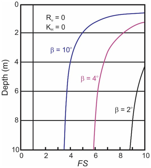 - Griffiths, D.V.; Huang, J.; Fenton, G.A. Probabilistic infinite slope analysis. Comput. Geotech. 2010, 38, 577–584. [Google Scholar] [CrossRef]