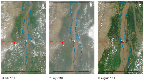 - Daily Images of the 2010 Flood Episodes Are Available in NASA Worldview Web Service. Available online: https://worldview.earthdata.nasa.gov/?p=geographic&l=MODIS_Terra_CorrectedReflectance_TrueColor,Graticule(hidden),Reference_Labels(hidden),Coastlines(hidden)&t=2018-11-14-T00%3A00%3A00Z&z=3&v=51.000945871291805,5.956715959569404,110.8720396212918,39.14421595956941 (accessed on 14 November 2018).