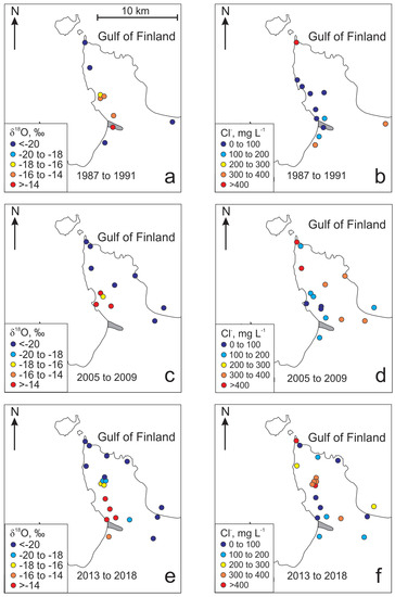 Variations of δ18O and Cl− in the Gdov aquifer in the Viimsi peninsula in different periods of time.