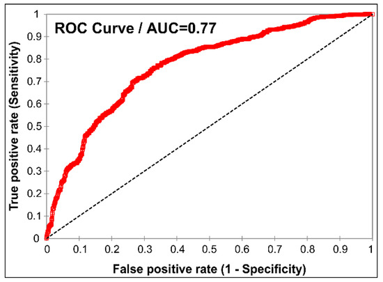 Receiver operating characteristic (ROC) curve and area under the curve (AUC) value for the validation of the susceptibility.
