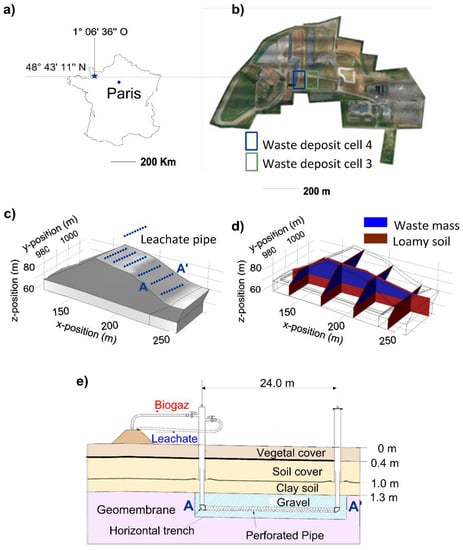 - Audebert, M.; Clement, R.; Moreau, S.; Duquennoi, C.; Loisel, S.; Touze-Foltz, N. Understanding leachate flow in municipal solid waste landfills by combining time-lapse ERT and subsurface flow modelling—Part I: Analysis of infiltration shape on two different waste deposit cells. Waste Manag. 2016, 55, 165–175. [Google Scholar] [CrossRef] [PubMed]