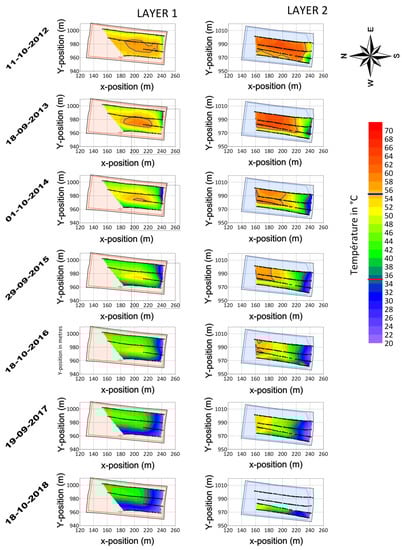 - Hanson, J.L.; Yesiller, N.; Oettle, N.K. Spatial Variability of Waste Temperatures in MSW Landfills. In Proceedings of the Global Waste Management Symposium, Phoenix, AZ, USA, 24–28 February 2008. [Google Scholar]