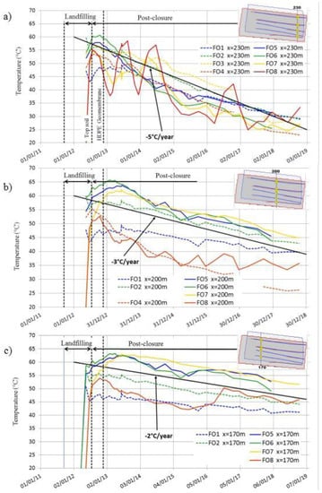 - Moreau, S.; Chevrier, B.; Saidi, F.; Buton, G.; Bouye, J.-M. Using fibreoptic to measure waste mass temperature: Application to evaluate leachate recirculation network in landfill bioreactor. In Proceedings of the Sardinia 2009 Twelfth International Waste Management and Landfill Symposium, Sardinia, Italy, 5–9 October 2009. [Google Scholar]