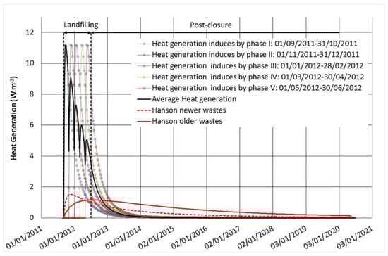 - Yesiller, N.; Hanson, J.L.; Liu, W.-L. Heat Generation in Municipal Solid Waste Landfills. J. Geotech. Geoenviron. Eng. 2005, 131, 1330–1344. [Google Scholar] [CrossRef]