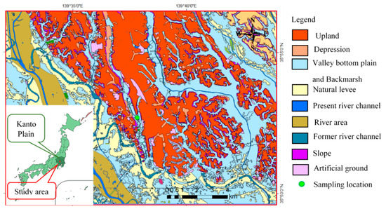 - Matsuda, I. Distribution of the Recent Deposits and Buried Landforms in the Kanto Lowland, Central Japan. Geogr. Reports Tokyo Metrop. Univ. 1974, 9, 1–36. [Google Scholar]