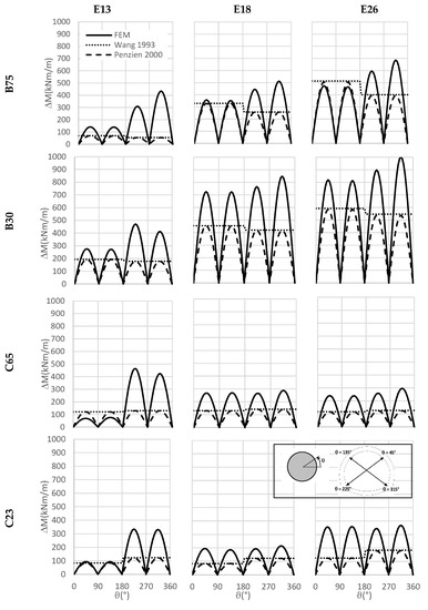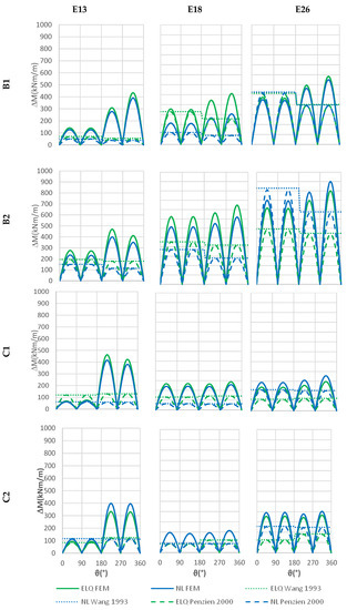 Figure 13 shows the comparisons between numerical and analytical [29,30] bending moments for the cases B1, B2, C1, and C2.
