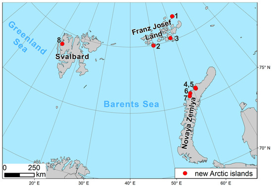 New Arctic islands. Location numbers are the same as in Figure 1.