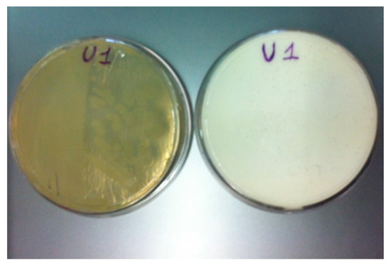 All the calcifying cultures showed carbonate-solubilization ability when grown on 0.14% CaCO3, after four weeks of incubation at 28 °C (Table 6). Vibrio tubiashii (P2), Clavibacter agropyri (P3, P10), the not identified strains P1 (Figure 3), and P7 being particularly effective.