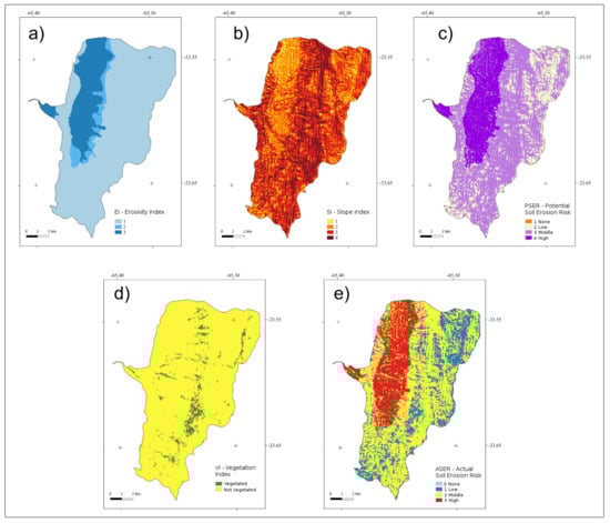 The Potential Soil Erosion Risk (PSER) is then obtained by the product: