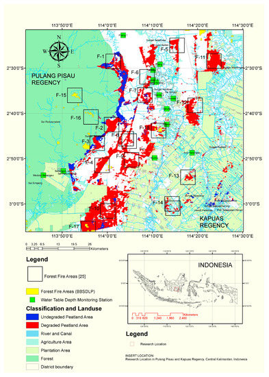 - BPS-Statistics of Pulang Pisau Regency. Pulang Pisau Regency in Figures 2018; BPS-Statistics of Pulang Pisau Regency: Central Kalimantan, Indonesia, 2018. [Google Scholar]