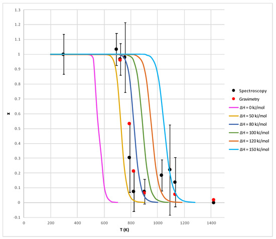 The parameter, introduced in Section 2, allows us to control the carbonate fraction during the decomposition process. is calculated theoretically by means of Equation (7):