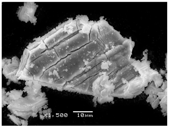 The substantial agreement of the results obtained with the gravimetric and spectroscopic methods, visible in Figure 5, is quite interesting with relevance to future applications: it provides a validation of the spectroscopic method, which can be used without having access to the initial mass of the material (as in the case of most samples in/from space) and without modification in the presence of mixed oxides. The trend between experimental and theoretical curves is the same from a qualitative point of view (especially as far as the gravimetric data are concerned), but it seems that the theoretical model must include a non-zero “additional enthalpy” to fit the experimental data. Currently, it is not very clear how to interpret this enthalpy: it might be an activation enthalpy (due to the presence of barriers to the CO diffusion) or an additional thermal capacity (due to additional surface energy associated with crystal breaking when CO is released). This last possibility is supported by SEM images of the sample S1 heated at high temperatures (1150 C), showing that the processed grains have a strongly fractured structure (Figure 6). The fracturing processes are probably associated with the pressure exerted by CO gas, and the corresponding surface energy has also to be included into the evaluation of the enthalpy of the whole process.