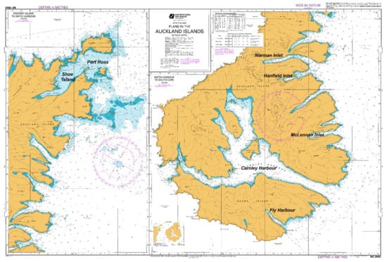 - Land Information New Zealand (LINZ). NZ2862 Plans in the Auckland Islands. 2017. Available online: http://www.linz.govt.nz/sea/charts/paper-charts/nz202-chart-catalogue/2862 (accessed on 15 January 2018).