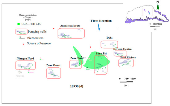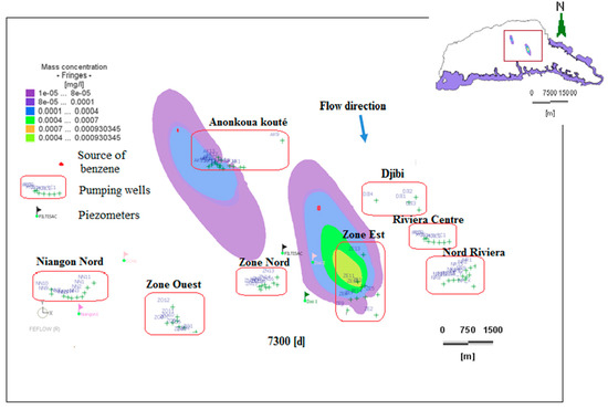 This potential threat of the pollution of the Continental Terminal aquifer could also come from economic enterprises such as gas stations, which have become abundant in the different municipalities of the district of Abidjan [32]. Therefore, it is necessary to study cases regarding the contaminant plumes of fuels such as benzene originating from leaky tanks as they become obsolete, break, or rupture during accidents.
