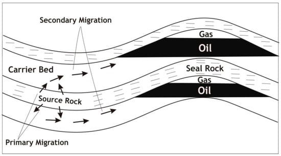 - Carruthers, D.; Ringrose, P. Secondary oil migration: Oil-rock contact volumes, flow behaviour and rates. Geol. Soc. Lond. Spec. Publ. 1998, 144, 205–220. [Google Scholar] [CrossRef]